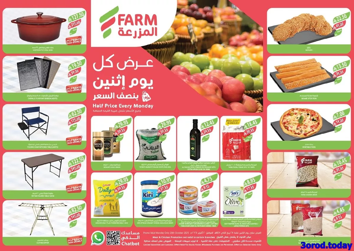 عروض اسواق المزرعة المنطقة الشرقية الاثنين 20-10-2025 تقدم تشكيلة من المنتجات منها المواد المنزلية الأساسية والأجهزة الصغيرة إضافة إلى عروض مميزة على المواد الغذائية والمخبوزات الطازجة و بتوفر كمان الطاولات القابلة للطي والكراسي وألواح التقطيع بالإضافة إلى مستلزمات تنظيم الغسيل وتجهيزات الرحلات باقل الاسعار