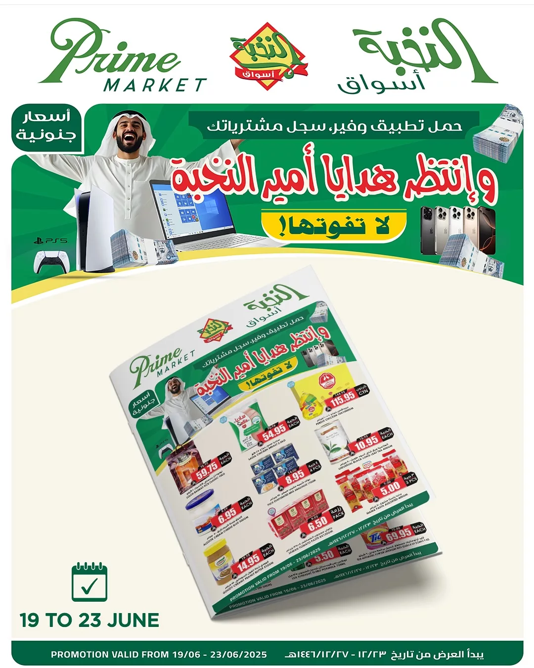 عروض أسواق النخبة الخميس 19-6-2025 تقدم مجموعة متنوعة من المنتجات اليومية التي يحتاجها كل منزل حيث تشمل العصائر والمياه والمناديل والبسكويت والمنظفات وكلها من علامات تجارية معروفة بجودتها وتتوفر بكميات مختلفة تناسب الاستخدام اليومي كما تشمل العروض خيارات ممتازة من منتجات الألبان والحليب