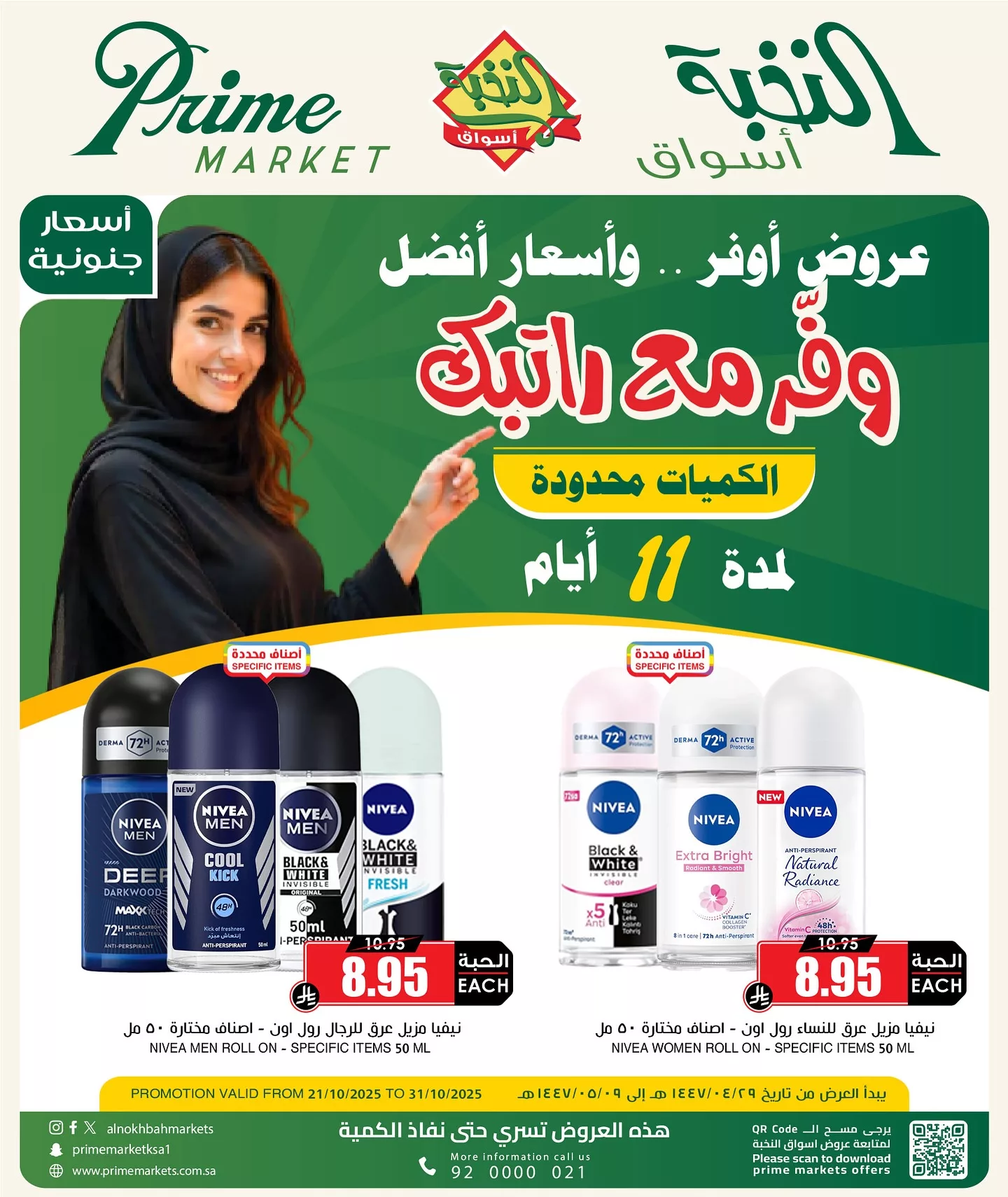 عروض اسواق النخبة مستمرة حتي الجمعة 31-10-2025 تقدم مجموعة من المنتجات المنزلية والمنظفات والعناية الشخصية منها مساحيق الغسيل والمناديل المعطرة ومواد تنظيف الأرضيات ومعطرات الجو ومنتجات العناية بالشعر والبشرة وغيرها من المنتجات و باسعار تنافسية مناسبة للجميع فقط ابقوا معنا .