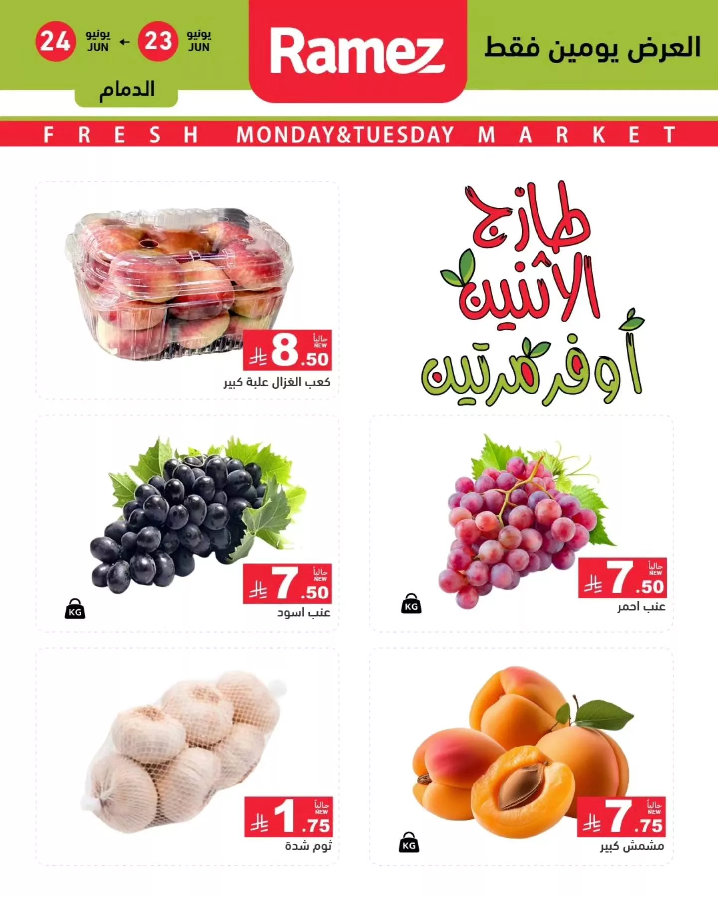 تقدم عروض أسواق رامز السعودية الاثنين 23 يونيو 2025 في مختلف فروعها داخل المملكة تخفيضات مميزة على تشكيلة واسعة من الخضار والفواكه الطازجة حيث تشمل العروض طماطم وخيار وكوسة وبطاطس بأنواعها وبصل أحمر مع تنوّع في جودة المنتجات واختيارات تناسب مختلف الأذواق