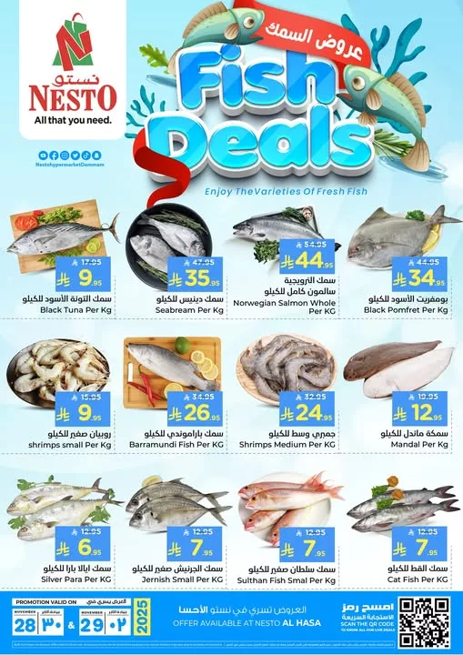 عروض الأسماك في نستو الدمام من 28 إلى 29 نوفمبر 2025 افضل انواع الاسماك الطازجة بأفضل الاسعار التي لا تفوت استفيدوا من تخفيضات نهاية الاسبوع محبي المأكولات البحرية في الدمام و الاحساء اسعار منافسة و جودة عالية.