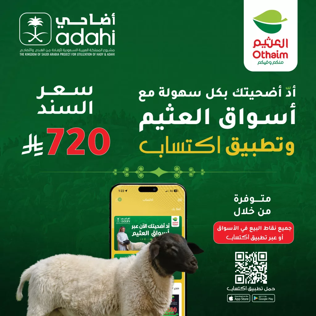مع اقتراب موسم عيد الأضحى المبارك، تتجه أنظار الكثير من المواطنين والمقيمين في السعودية إلى اختيار أفضل وأيسر الطرق لأداء الأضحية، ولهذا تقدم أسواق العثيم بالتعاون مع مشروع المملكة العربية السعودية للإفادة من الهدي والأضاحي “أضاحي”، عرضًا مميزًا يمكن من خلاله أداء الأضحية بكل سهولة وأمان عبر تطبيق اكتساب، بسعر موحد 720 ريال سعودي للسند الواحد