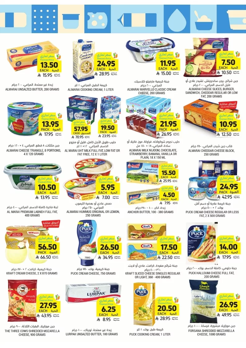 عروض التميمي الأحساء الأسبوعية الأربعاء 16 ربيع الآخر 1447هـ تقدم خصومات على الفواكه الطازجة والخضروات والعصائر الطبيعية بجانب عروض على اللحوم المجمدة والدواجن المحلية كما تشمل التخفيضات منتجات المعلبات والمكسرات والحبوب مع خصومات إضافية على أدوات المطبخ الصغيرة والأجهزة العملية للمنزل