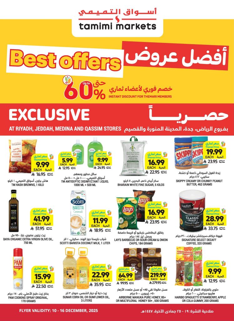 نستعرض معاكم عروض التميمي الخميس 11-12-2025 و نقدم لكم منتجات الفطور والوجبات الخفيفة مثل رقائق البطاطس بنكهات مختلفة وزبدة الفول السوداني الكريمية والمقرمشة وحبوب الإفطار والمشروبات الساخنة إلى جانب الزيوت النباتية ورذاذ الطهي وحليب جوز الهند ومنتجات القهوة انتظرونا في تغطية مباشرة و حصرية لـ احدث عروض رمضان 2026 علي موقعكم عروض توداي .