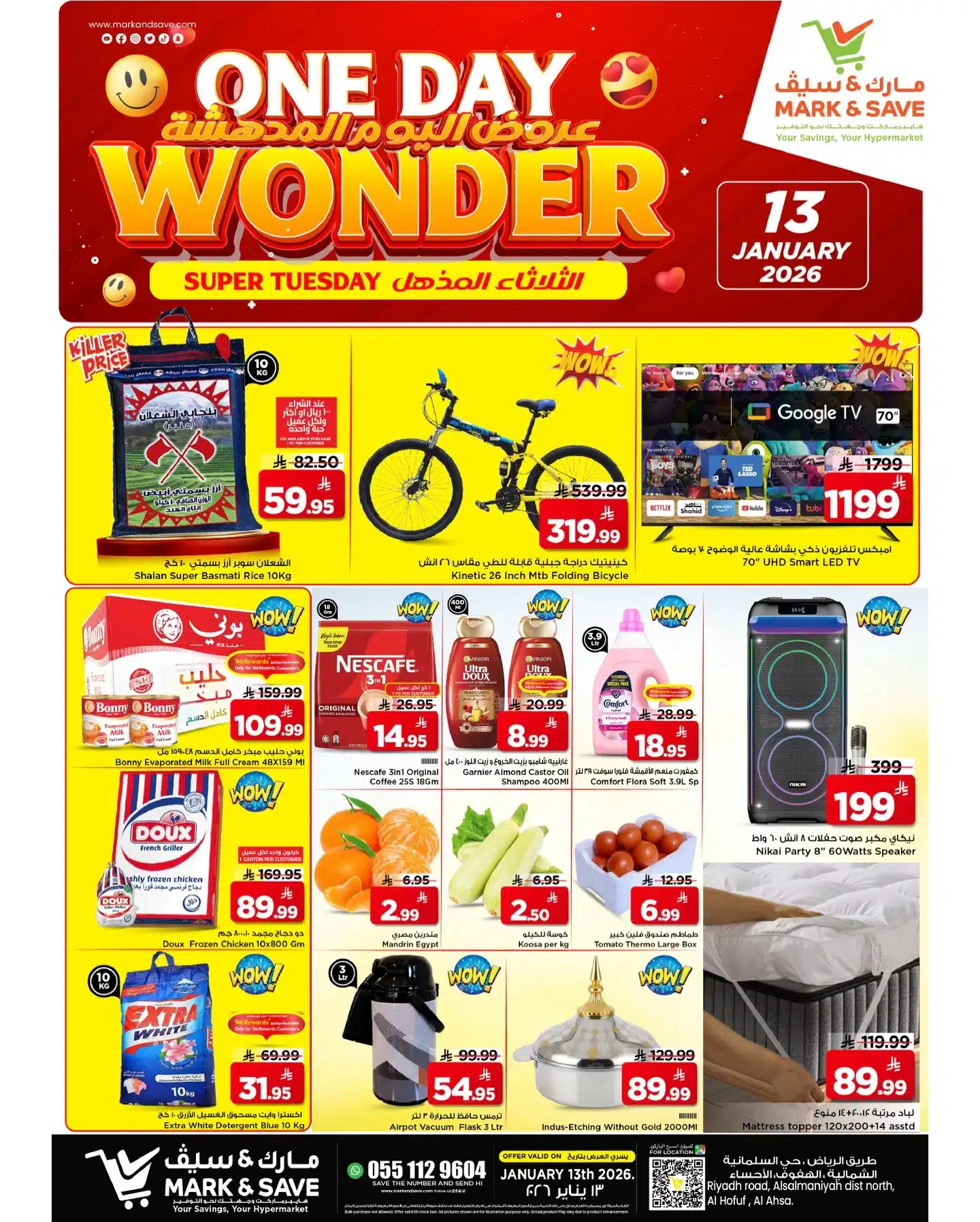 عروض الثلاثاء السوبر في مارك اند سيف 13 يناير 2026 فقط منتجات مختارة و عروض حصرية ليوم الثلاثاء فقط ضمن تخفيضات منتصف الاسبوع على منتجات متنوعة في جميع فروع مارك اند سيف في المملكة لا تفوتوا اقوى المنتجات و استمتعوا معنا في العروض.