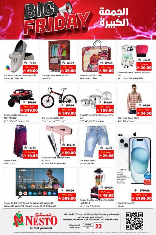 عروض الجمعة الكبيرة في نستو السعودية 23-1-2026 صفقات لا تقبل المنافسة على اجهزة المنزل والإلكترونيات والاسياسيات اليومية في اسواق نستو ليوم الجمعة فقط في مترو مركز النقل – 33 مول القطار لا تفوتوا افضل العروض الخاصة في اسواق نستو