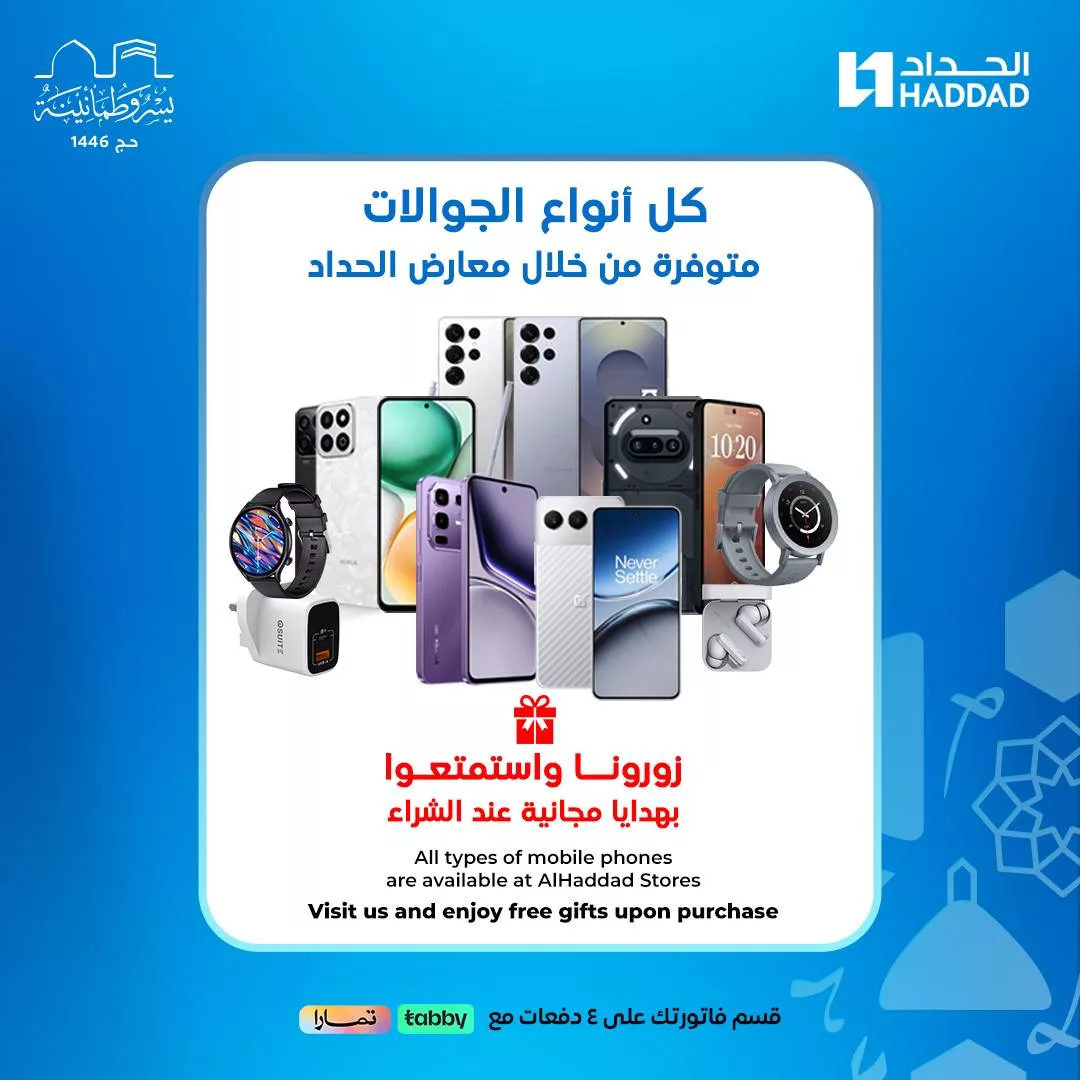 تعتبر عروض الجوالات من أكثر العروض التي تحظى باهتمام كبير في المملكة العربية السعودية، حيث يتطلع الكثير من المستخدمين إلى اقتناء أحدث الهواتف الذكية بأفضل الأسعار مع الحصول على مزايا إضافية. وفي هذا الإطار، تقدم معارض الحداد عرضًا مميزًا خلال موسم حج 1446هـ يشمل مجموعة واسعة من هواتف OnePlus وSamsung مع هدايا مجانية قيّمة عند الشراء. هذا العرض الفريد الذي توفره الحداد يمنحك فرصة الحصول على أحدث التقنيات من العلامات التجارية الرائدة بأسعار مناسبة وهدايا تجعل تجربة الشراء أكثر متعة وتميزً