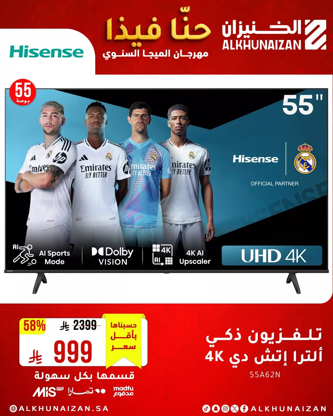 تلفزيون ذكي ألتر HD من Hisense – موديل 55A62N