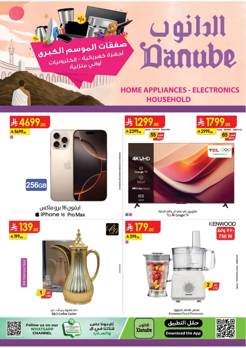 عروض الدانوب السعودية شملت أيضا مجموعة رائعة من أجهزة المطبخ مثل محضرات الطعام والخلاطات والعصارات من علامات مثل كينوود ومولينكس وبراون بتصاميم عملية وسعات مختلفة تناسب جميع الاستخدامات إلى جانب غلايات ومفارم ولوازم مطبخ متعددة كما برزت عروض الأجهزة الصغيرة