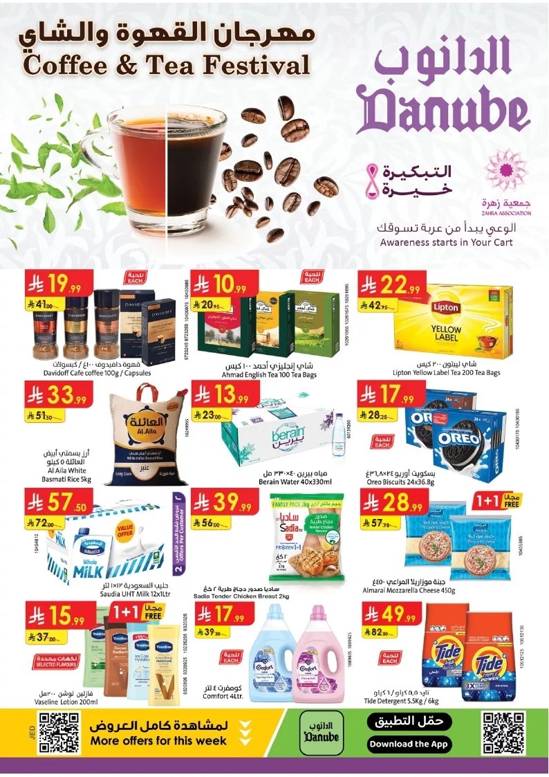 عروض الدانوب جدة الأسبوعية الخميس 9-10-2025 تبدأ بالعروض على الأجهزة الكهربائية الصغيرة مثل أجهزة القهوة وأفران الطهي وأطقم المطبخ الفاخرة ثم تقدم تخفيضات على اللحوم الطازجة والأسماك البحرية والدواجن المحلية كما تشمل العروض منتجات المعلبات والعصائر والزيوت الطبيعية مع خصومات على أدوات المائدة وأجهزة المطبخ