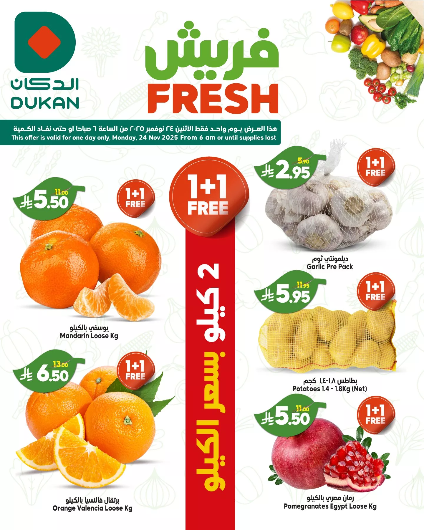 عروض الدكان الطازج ليوم الاثنين 24 نوفمبر 2025 فقط ليوم واحد لا تفوتوا افضل العروض المنافسة ضمن تخفيضات منتصف الاسبوع