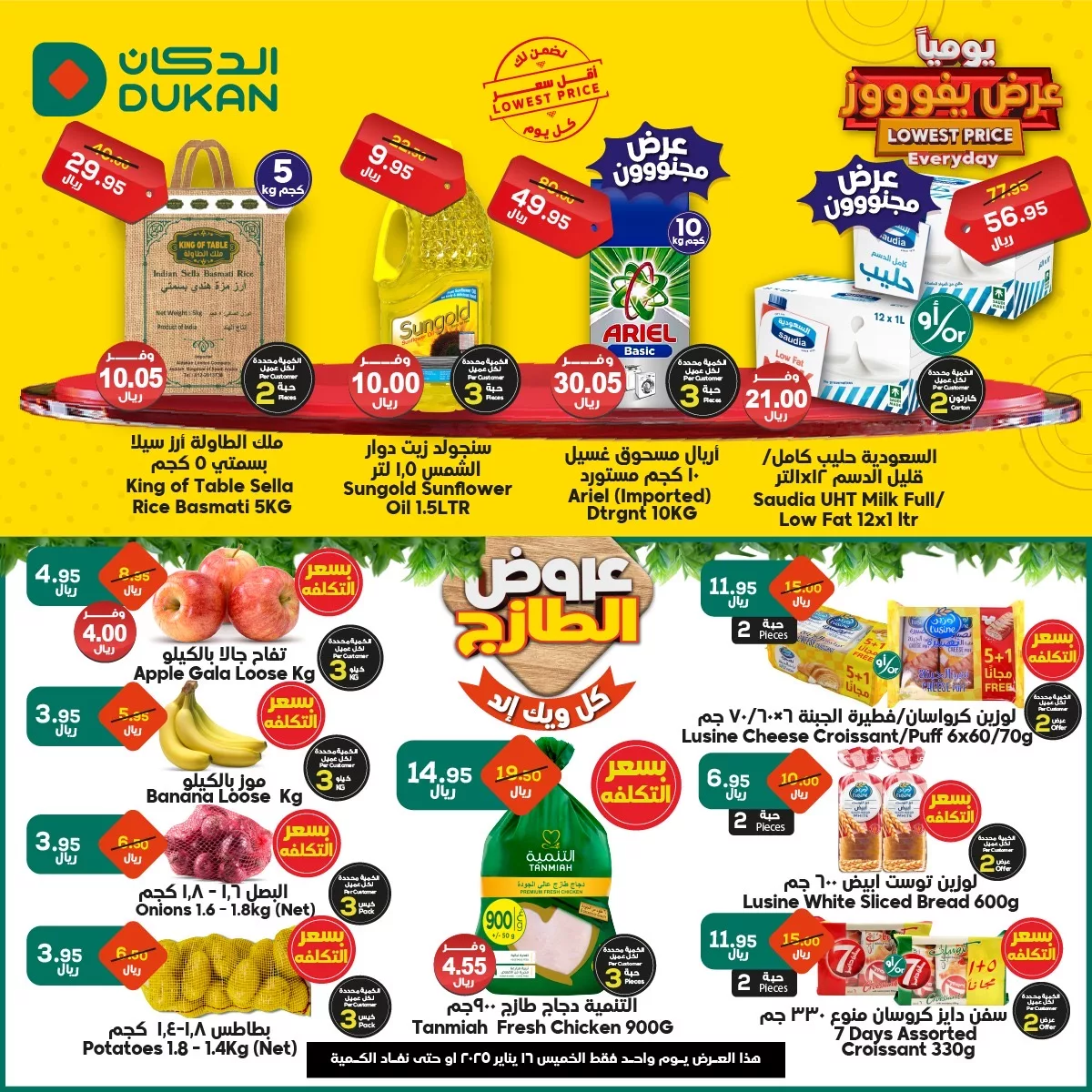 تقدم متاجر الدكان جدة يوم الخميس 16 يناير 2025 عروضا استثنائية تغطي مجموعة واسعة من المنتجات التي يحتاجها كل منزل حيث تتوفر التخفيضات على المواد الغذائية الأساسية مثل الأرز و الزيت ومساحيق الغسيل بالإضافة إلى منتجات الألبان والعصائر و هذه العروض توفر لك فرصة مميزة لتأمين احتياجات أسرتك بأسعار مذهلة،
