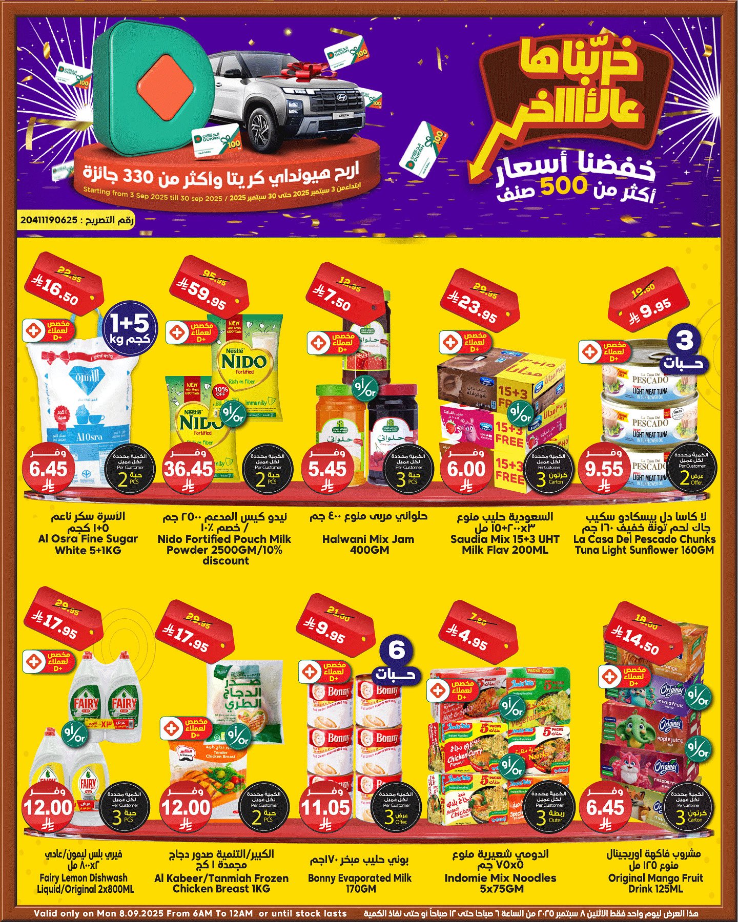 عروض هايبرماركت الدكان بعنوان خربناها على الآخر خفضنا الأسعار أكثر من 500 صنف لتلبية احتياجات الأسرة السعودية بأسعار منافسة وذلك يوم الاثنين الموافق 8 سبتمبر 2025 لا تفوتوا عروض التوفير الكبير في متاجر الدكان السعودية