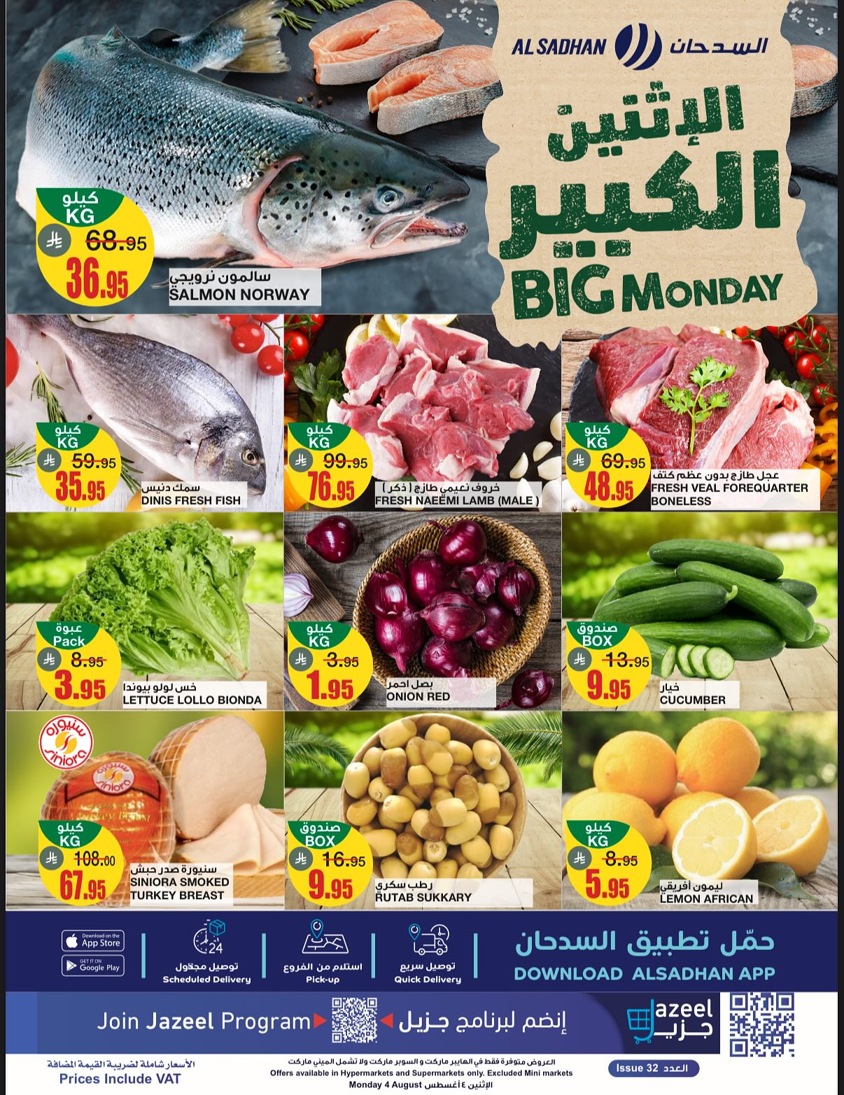 تقدم عروض السدحان الاثنين 4-8-2025 تشكيلة مميزة من المنتجات الغذائية تشمل البيتزا والكيك والتونة والزيت والمكسرات بأسعار منافسة و تضم ايضا اللحوم الطازجة والأسماك بأنواعها بالإضافة إلى قسم الخضروات والفواكه و باقل الاسعار المناسبة للجميع تابعونا علي موقعكم عروض توداي ليصل اليكم كل جديد