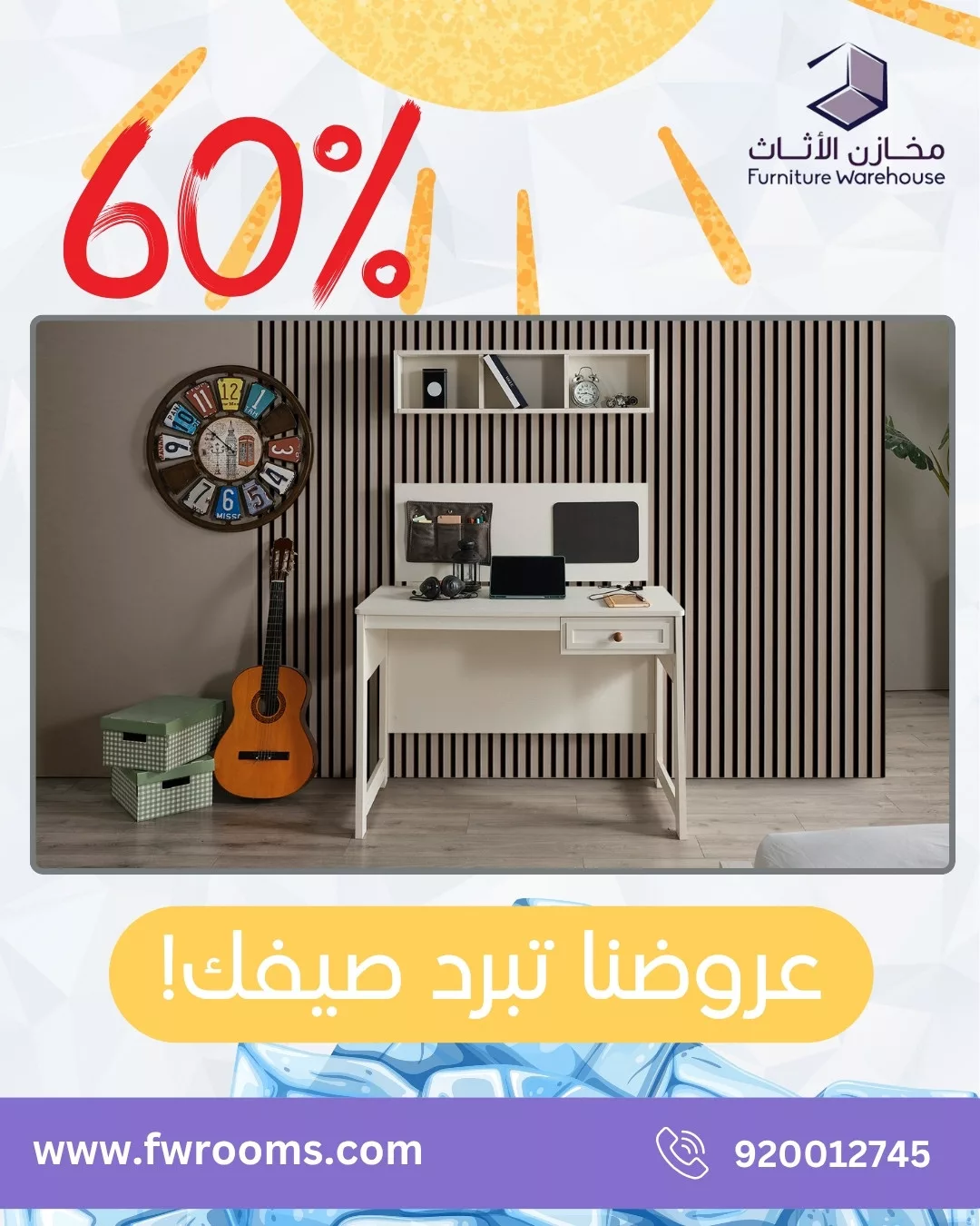 العرض يأتي ضمن حملة “عروض الصيف” لدى مخازن الأثاث، وهو مناسب لكل من يبحث عن تجديد ديكور الغرفة أو إنشاء مساحة دراسة جديدة بتكلفة أقل