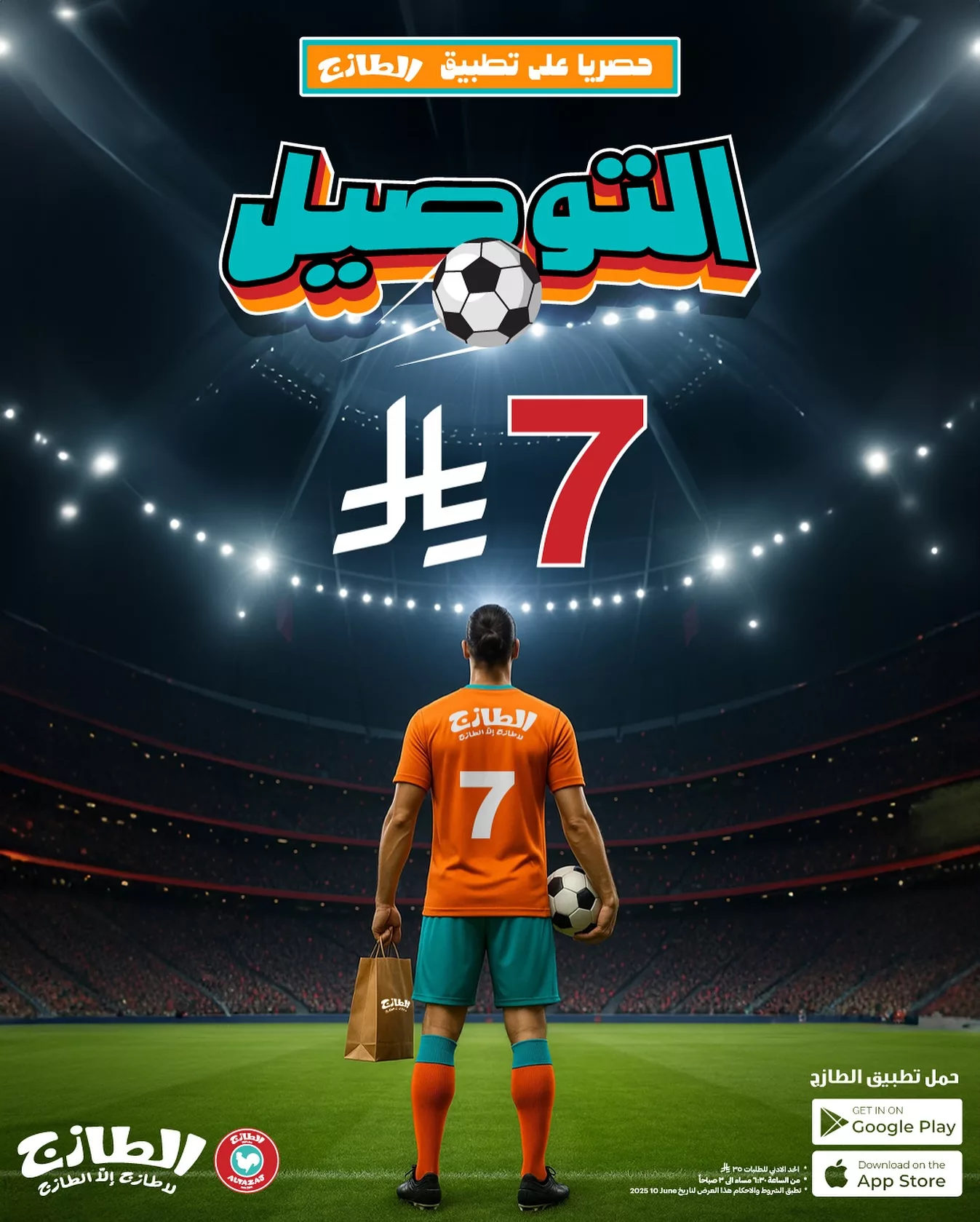 الطازج يطلق عرضًا خاصًا لعشاق الأكلات السريعة والطعم الأصيل، يمكنكم الآن طلب وجباتكم من خلال تطبيق الطازج والدفع فقط 7 ريال سعودي رسوم توصيل، بدلًا من الرسوم العادية. هذا العرض يأتيكم في إطار دعم الأجواء الرياضية وموسم البطولات الذي تعيشه المملكة.