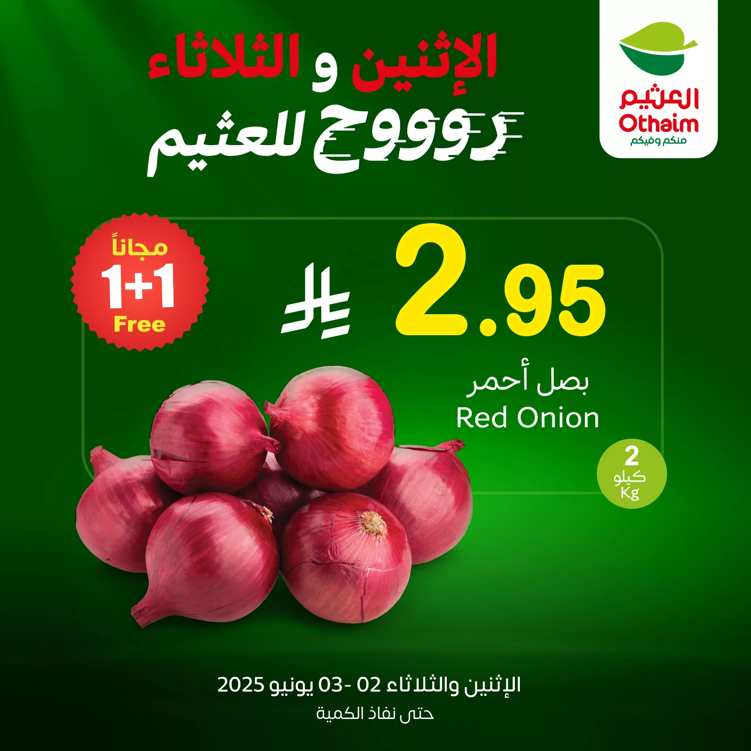 - بصل أحمر 2 كجم – 2.95 ريال (اشترِ 1 واحصل على 1 مجانًا)