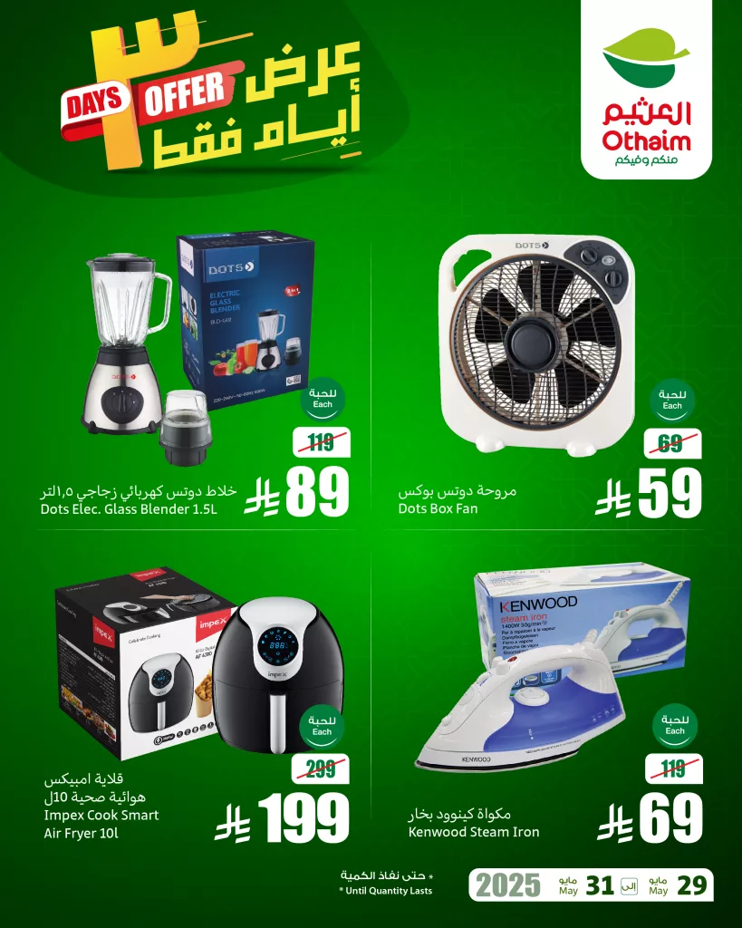 عروض العثيم للأجهزة المنزلية والإلكترونيات الخميس 29 مايو 2025 لمدة 3 ايام
