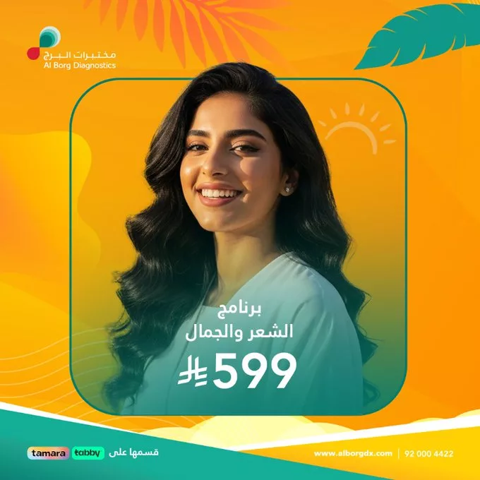 مع ارتفاع درجات الحرارة في فصل الصيف وتزايد التعرّض لأشعة الشمس، يصبح الاهتمام بالصحة والجمال ضرورة أكثر من كونه رفاهية، خصوصًا عندما يتعلق الأمر بصحة الشعر والبشرة التي تتأثر بعوامل الجو والتغذية والنوم. مختبرات البرج تقدم لكم حلاً مبتكرًا وعلميًا مع برنامج الشعر والجمال بسعر خاص 599 ريال، مما يجعله خيارًا مثاليًا لمن يبحثون عن العناية الدقيقة والمتخصصة