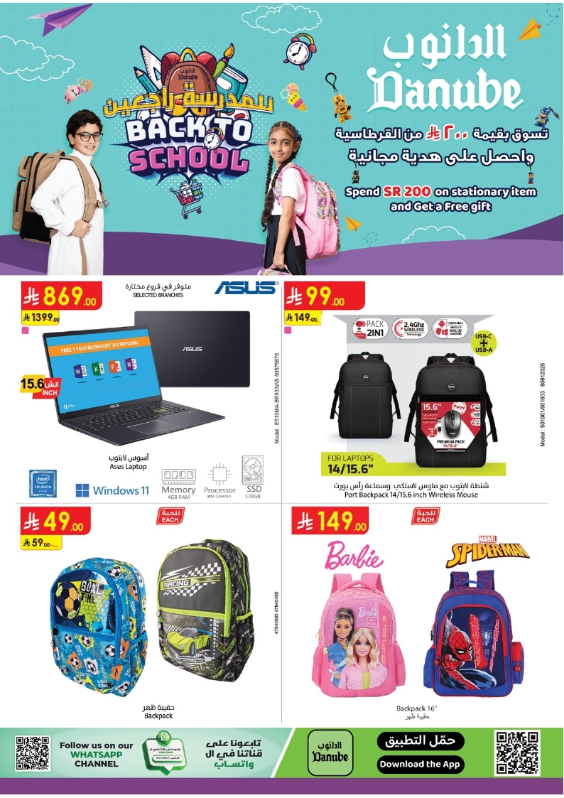 عروض الدانوب بمناسبة العودة للمدارس مستمرة حتي الثلاثاء 12-8-2025 تقدم مجموعة واسعة من المنتجات التي تلبي احتياجات الطلاب من أجهزة لابتوب و مستلزمات أساسية مثل الشنط مع الماوس والسماعات و تشمل تشكيلة ضخمة من الزمزميات الملونة كما تتوفر دفاتر مميزة وعدد أوراق مختلف لتناسب احتياجات كل طالب و بارخص الاسعار