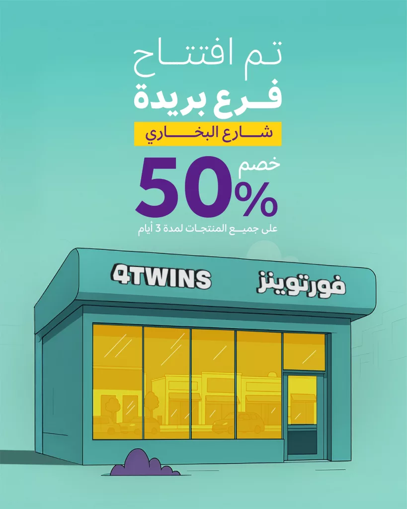 بمناسبة افتتاح الفرع الجديد في بريدة، أعلن كافيه فور توينز 4TWINS عن عرض خاص بخصم 50٪ على جميع المنتجات دون استثناء، ويستمر العرض لمدة ثلاثة أيام فقط تنتهي في يوم السبت 22 مايو