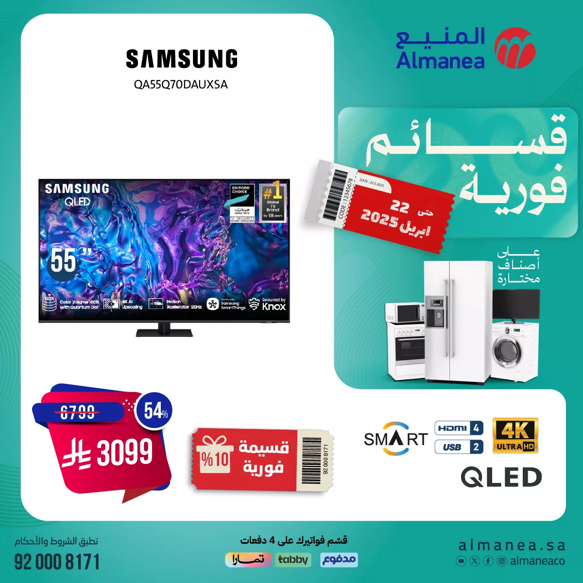 - شاشة SAMSUNG QLED 55 بوصة موديل QA55Q70DAUXSA بسعر 3099 ريال