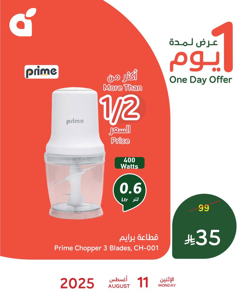 عروض بنده الاثنين 11 اغسطس 2025 تقدم منتجات مختارة بعناية لتلبية احتياجاتك اليومية بجودة عالية حيث تجد صدور دجاج طرية من علامة رويال المميزة والتي تأتيك مجمدة وطازجة و تشمل أيضا أدوات المطبخ العملية ومنها قطّاعة برايم ذات الثلاث شفرات المصممة لتوفير الوقت والجهد تابعونا لمعرفة كل جديد عن عروض السعودية