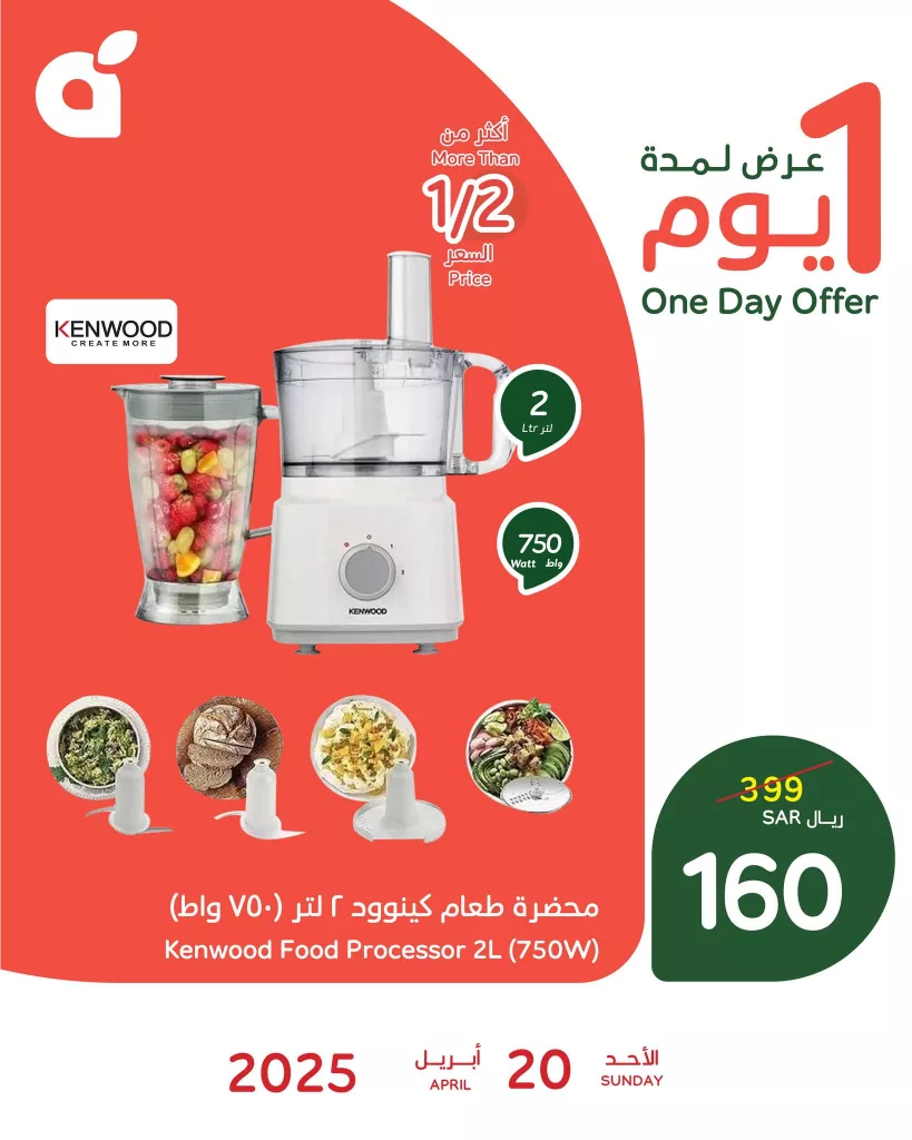عروض بنده الأحد 20 أبريل 2025 تقدم تخفيضات مميزة تستمر ليوم واحد فقط وتستهدف الباحثين عن الجودة العالية والاقتصاد في آنٍ واحد العرض يشمل أجهزة كهربائية منزلية أساسية تقدم قيمة عالية مقابل السعر منها محضرة الطعام كينود التي تتميز بسعتها الكبيرة وقوتها العالية