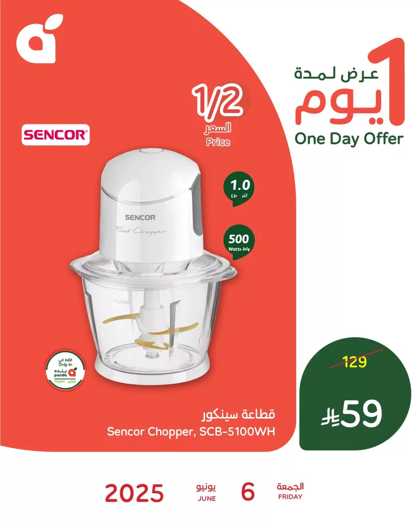 عروض بنده الجمعة 6 يونيو 2025 تقدم تخفيضات مذهلة لمدة يوم واحد فقط على مجموعة مختارة من الأجهزة المنزلية التي تلبي احتياجات الأسرة العصرية مع جودة عالية وتصميم أنيق القطاعة الكهربائية من سينكور تأتي ضمن هذه العروض لتمنح المستخدم أداء ممتازا في تحضير الطعام بكل سهولة وكفاءة