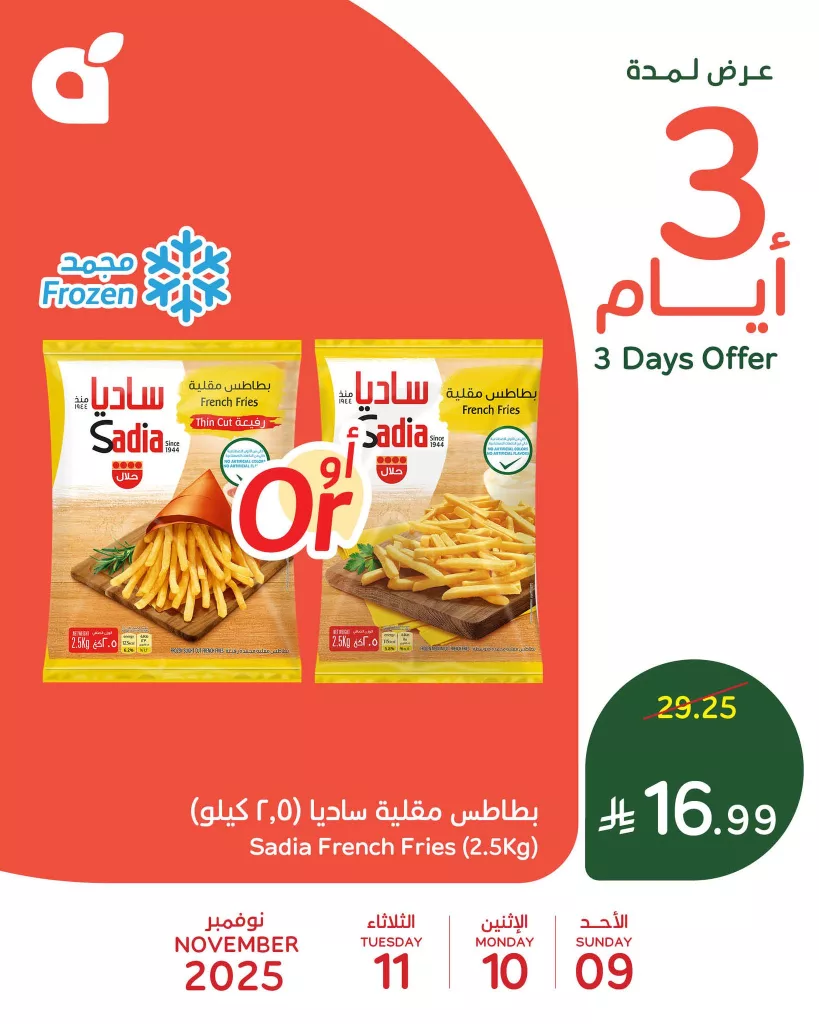 نستعرض معاكم اليوم احدث عروض بنده الاحد 9 نوفمبر 2025 و تضم منتجات متنوعة منها ناجت الدجاج السنبلة و بطاطس مقلية سادة و دجاج بروستد و غيرها من المنتجات و باقل الاسعار في عرض حصري متاح لمدة 3 ايام فقط تابعونا ليصلكم كل جديد عن عروض السعودية علي موقعكم عروض توداي