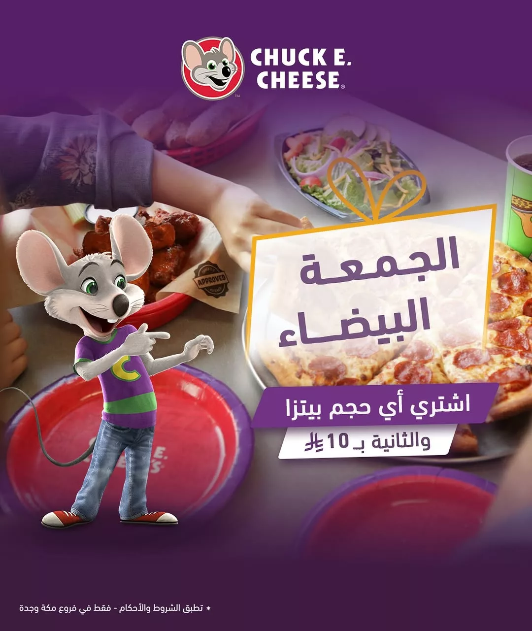 - اشتر أي حجم بيتزا والثانية فقط بـ10 ريال وجبات الجمعة البيضاء صارت ألذ مع تشكي تيشز