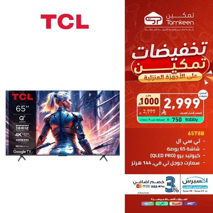 عروض تمكين واحدة من أبرز العروض التي ينتظرها المستهلكون في المملكة العربية السعودية لما تقدمه من تخفيضات كبيرة على مختلف الأجهزة المنزلية عالية الجودة. وتشمل هذه العروض منتجات من أشهر العلامات التجارية مثل TCL وGLEM GAS وGeneral Supreme، ما يمنح العملاء فرصة ذهبية لتحديث منازلهم بأحدث التقنيات وبأقل الأسعار.