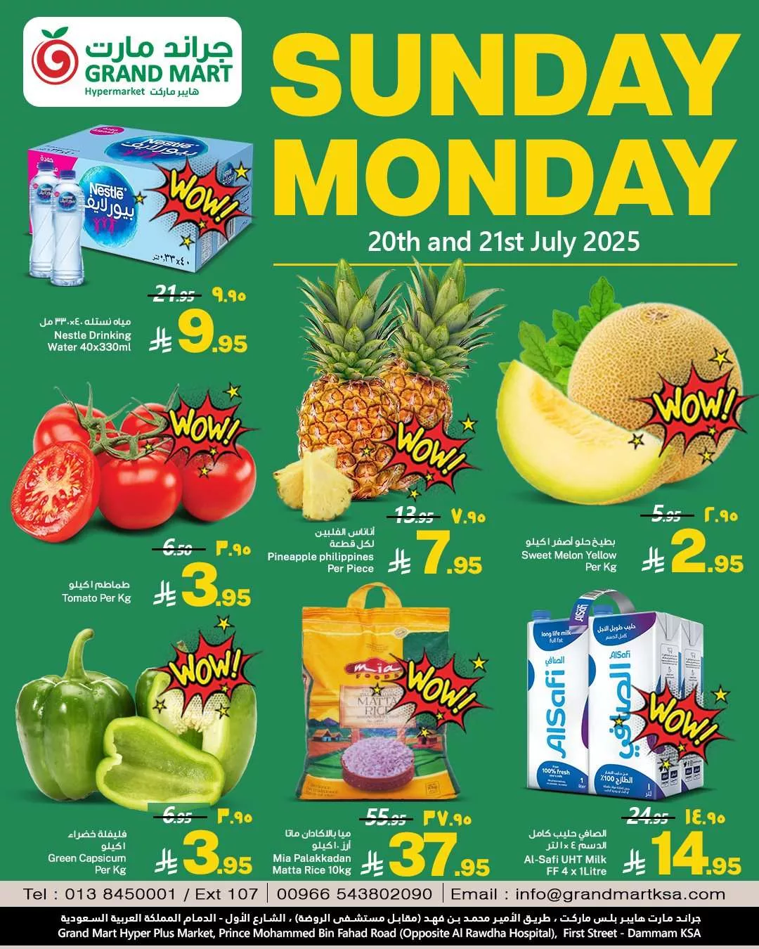عروض جراند مارت الدمام الأحد 20 يوليو 2025 تقدم باقة متنوعة من المنتجات الطازجة والمختارة بعناية من الفواكه والخضروات اليومية التي يحتاجها كل بيت كما تشمل العروض مجموعة من السلع الأساسية مثل المياه المعبأة والأرز والحليب مما يجعلها فرصة مثالية للتسوق الذكي