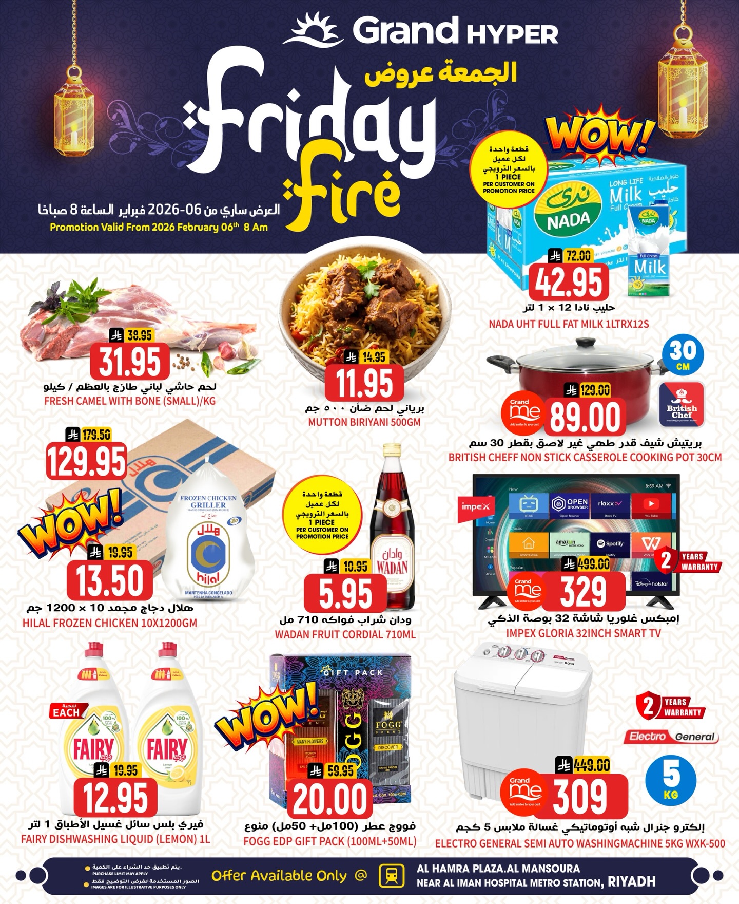 العرض ساري يوم الجمعة 6 فبراير 2026 من الساعه 8 صباحا لا تفوتوا العروض وتفضلوا بزيارة اسواق جراند هايبر الرياض