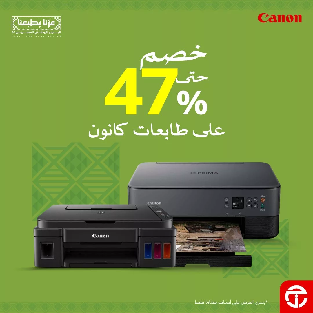 عروض جرير خصم 47% على طابعات كانون بمناسبة اليوم الوطني السعودي 2025