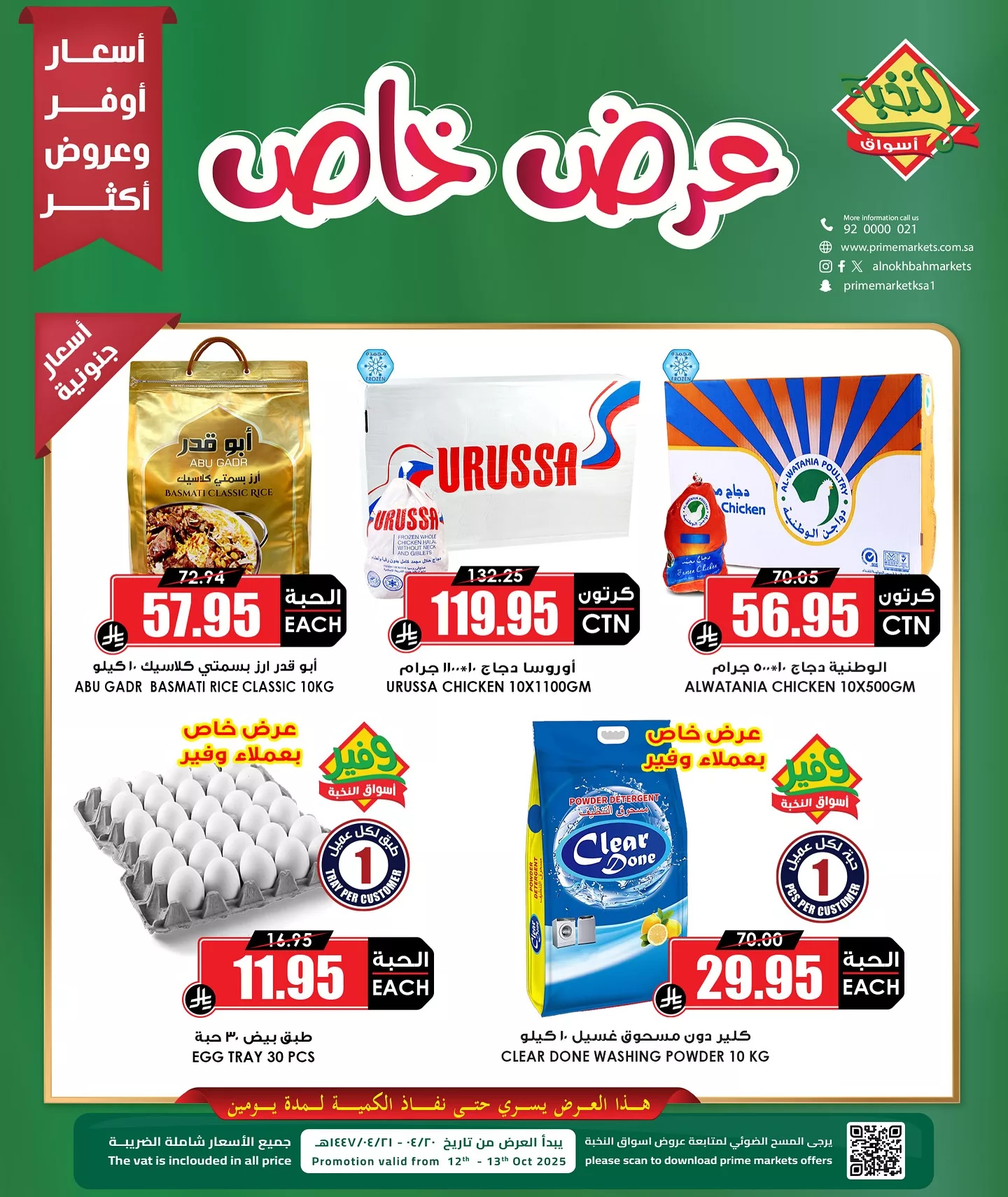عروض أسواق النخبة الاثنين 13-10-2025 تقدم خيارات متنوعة من المنتجات الأساسية من أرز بسمتي كلاسيك الفاخر وكذلك الدجاج المجمد المتوفر بعدة ماركات مضمونة الجودة إضافة إلى منتجات الغسيويحرص على تقديم عروض حصرية لعملائه مع ضمان توفر أفضل السلع بأحجام مناسبة للاستخدامات المنزلية فقط تابعونا ليصلكم كل جديد