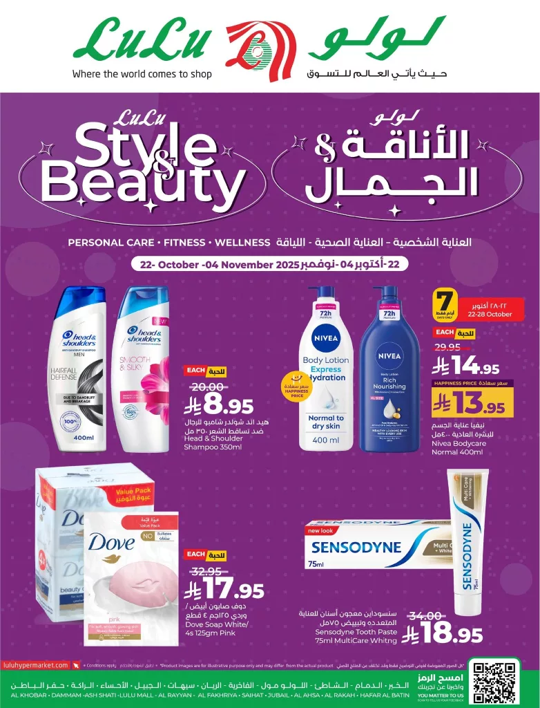 عروض لولو المنطقة الشرقية الأربعاء 30 ربيع الثاني 1447هـ بتضم مجموعة متنوعة من المنتجات للعناية الشخصية مثل الشامبو واللوشن والمناديل والصابون والكريمات ومنتجات العطور من ماركات متعددة و تتنوع لتشمل منتجات إلكترونية للعناية الشخصية بما في ذلك فرش الأسنان الكهربائية وأجهزة إزالة الشعر وغيرهم من الاجهزة