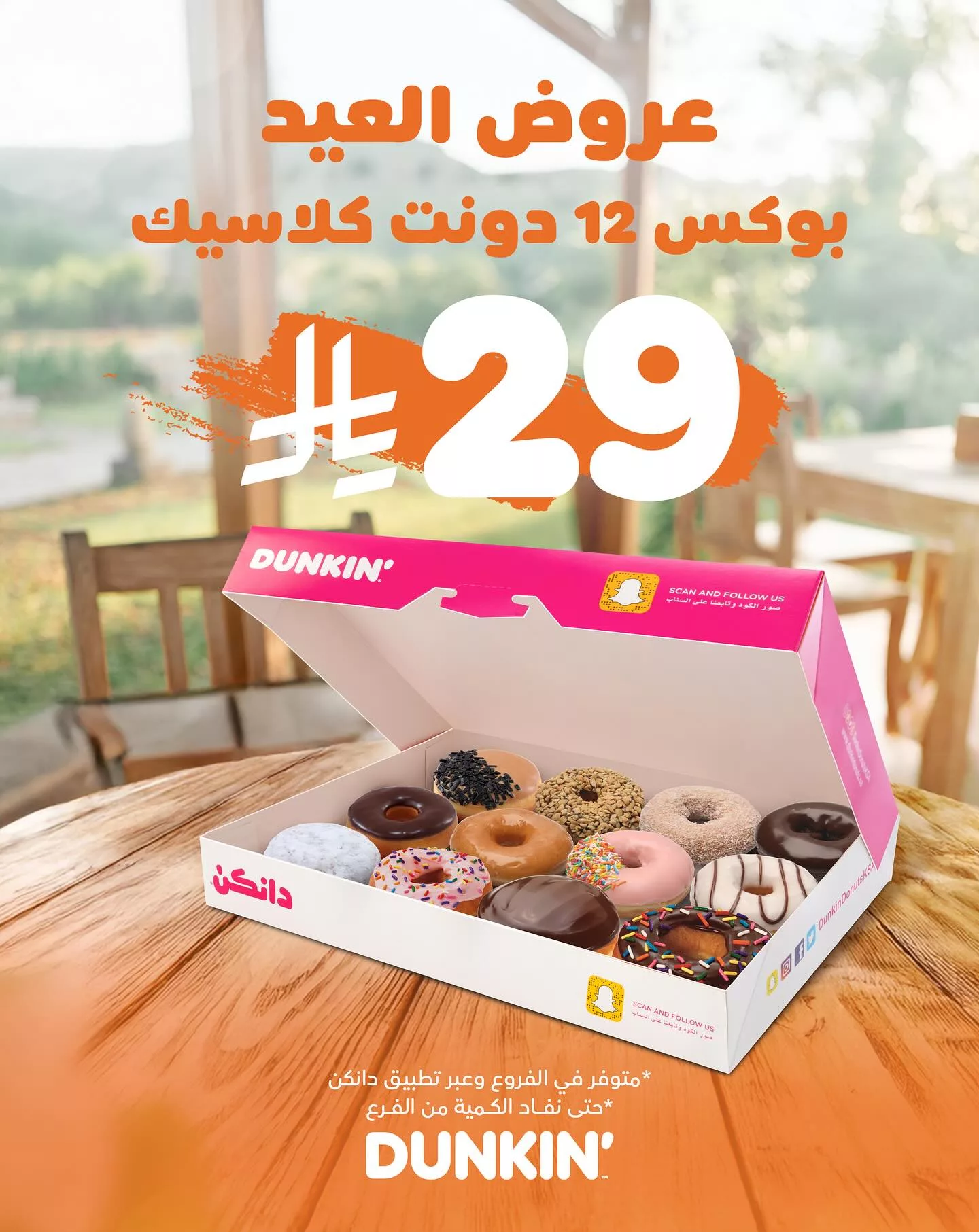 - العرض ساري في جميع فروع دانكن السعودية وعبر تطبيق دانكن، حتى نفاد الكمية من الفرع