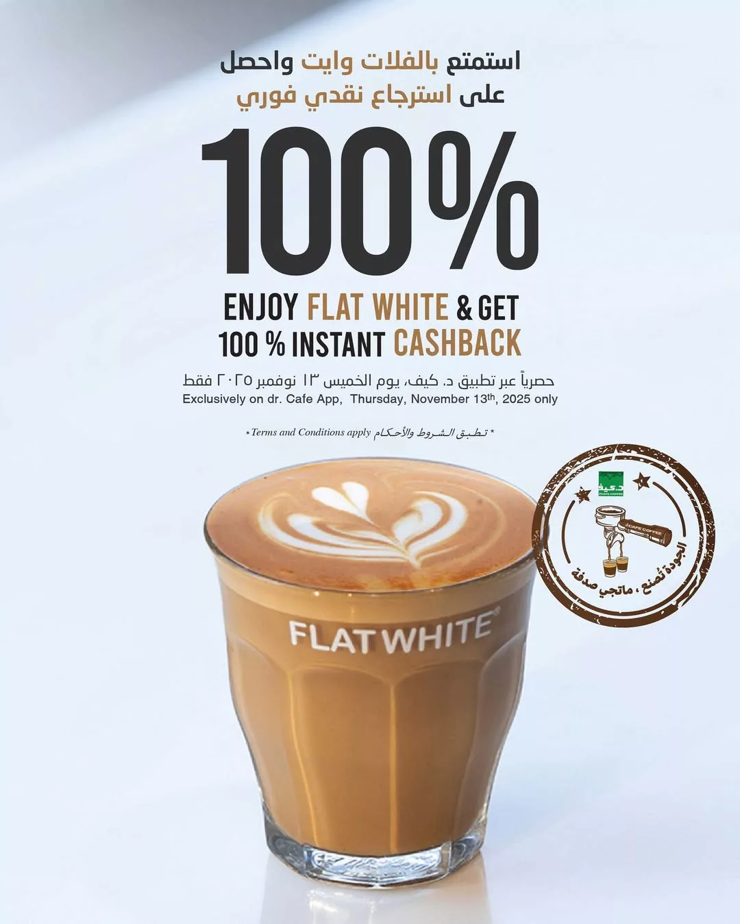 عروض د.كيف كافيه كاش باك 100% بمناسبة اليوم العالمي للجودة الخميس 13 نوفمبر 2025 فقط استفيدوا من العرض المميز