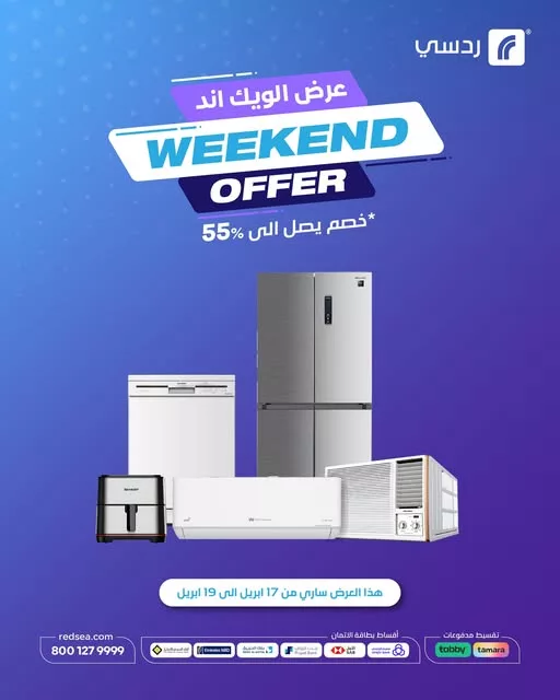 عروض الويكند من ردسي عبد اللطيف جميل لتُشعل حماس عشاق التسوق في السعودية بمجموعة من الخصومات القوية على الأجهزة المنزلية والإلكترونيات الرائدة ضمن حملة عرض الويكند الجديدة، حيث تبدأ التخفيضات بتاريخ 17 أبريل وتستمر حتى 19 أبريل 2025 لتمنح العملاء فرصة ذهبية لاقتناء أفضل الأجهزة بأقل الأسعار