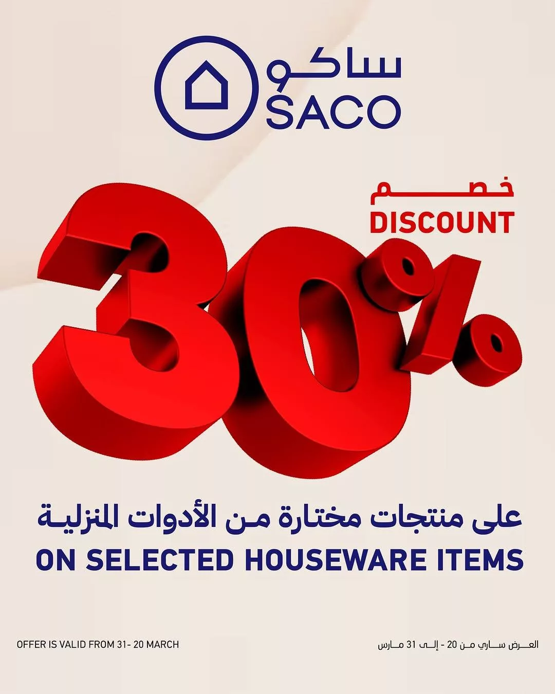 - نسبة الخصم: 30% على مجموعة مختارة من الأدوات المنزلية.
