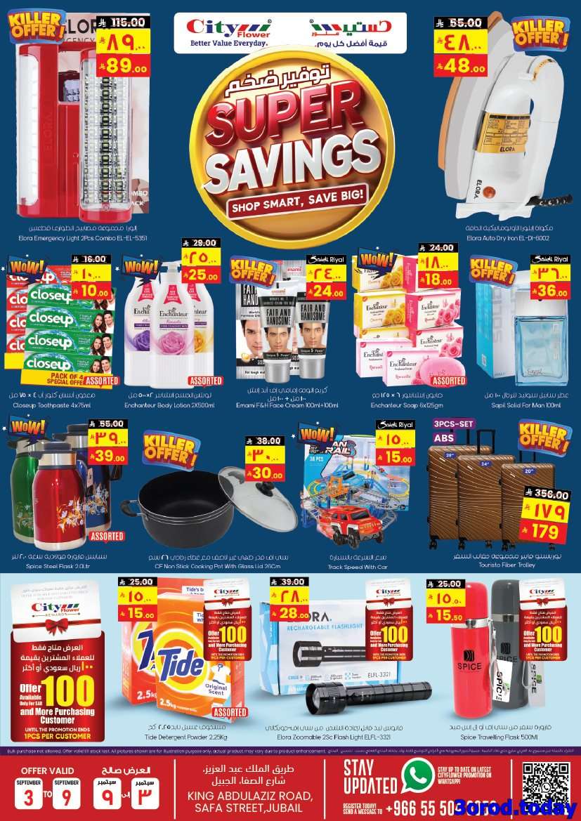 عروض سيتي فلور الجبيل الأسبوعية الأربعاء 11 ربيع الأول 1447هـ تقدم منتجات غذائية تشمل المعلبات مثل صلصة الطماطم والفاصوليا البيضاء والحمص المعلب بجانب الحبوب الكاملة مثل الشوفان والكينوا والأرز كما تضم الأجهزة المنزلية أجهزة صنع الساندويش وآلات تحضير العصائر وأفران التسخين الصغيرة باقل الاسعار المناسبة للجميع