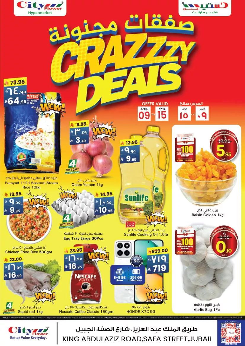 عروض سيتي فلور الجبيل الأربعاء 9 ابريل 2025 تأتي لتلبي كافة احتياجات الأسرة السعودية مع تخفيضات قوية على مكونات الطبخ الأساسية مثل الأرز البسمتي و زيت الطهي، الدقيق والمعلبات الجاهزة بالإضافة إلى عروض على البقوليات و الشوربات المعلبة والصلصات المتنوعة كما تشمل العروض تشكيلة من اللحوم المجمدة والدواجن،