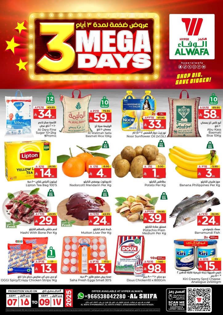 عروض الوفاء هايبر ماركت الاحد 7-9-2025 تأتيكم بتخفيضات استثنائية على المواد الغذائية الأساسية مثل الأرز والزيوت والسكر والشاي إضافة إلى تشكيلة واسعة من الفواكه والخضار الطازجة واللحوم والدواجن والمأكولات البحرية باقل الاسعار التي تناسب الجميع فقط تابعونا لمعرفة كل جديد عن عروض السعودية
