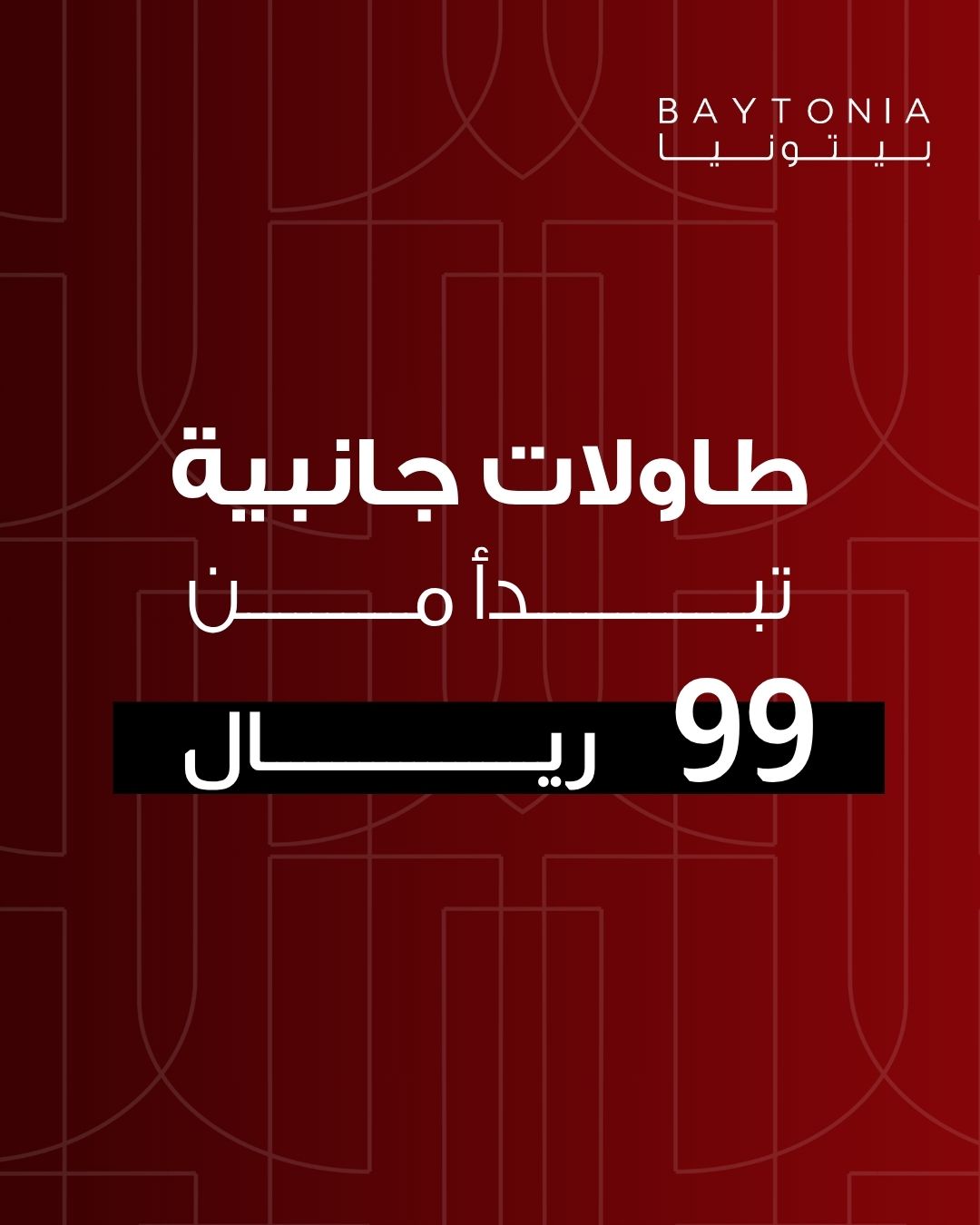 تقدم لكم معارض و مفروشات بيتونيا عرضها الجديد على الطاولات الجانبية و طاولات الخدمه بأسعار تبدأ من 99 ريال فقط و هذا العرض لفتره محدوده لحق حالك و استفيد من العرض و لا تدع الفرصه تفوتك