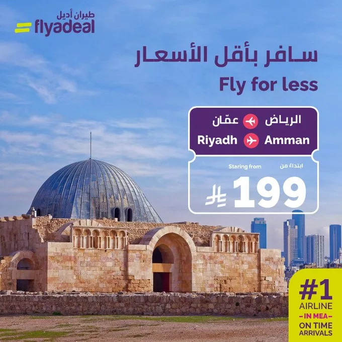 عروض طيران اديل سافر بأقل الأسعار من الرياض الى عمّان استمتعوا بأفضل الرحلات وسافروا بأسعار منافسة مع اديل