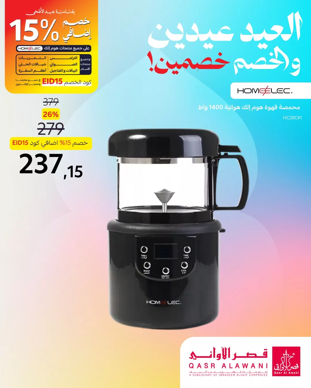 - محمصة قهوة هوم إلك هوائية 1400 واط – 237.15 ريال