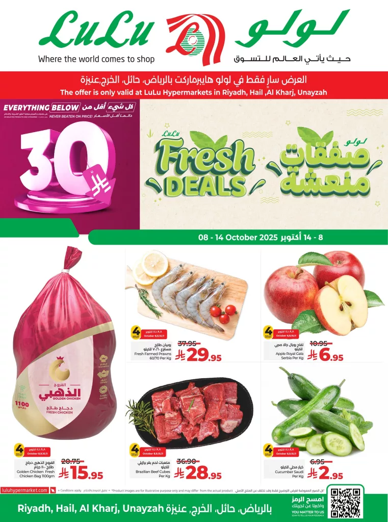 عروض لولو الرياض الاربعاء 8-10-2025 تقدم تشكيلة واسعة من المنتجات الطازجة من التفاح والخيار والرمان والموز والبطاطس والبروكلي والتين والبابايا والخس والمانجو وغيرها الكثير من المنتجات المختارة بعناية و تشمل أقسام اللحوم الطازجة والدواجن والأسماك والمأكولات البحرية والمنتجات المجمدة باقل الاسعار المناسبة للجميع