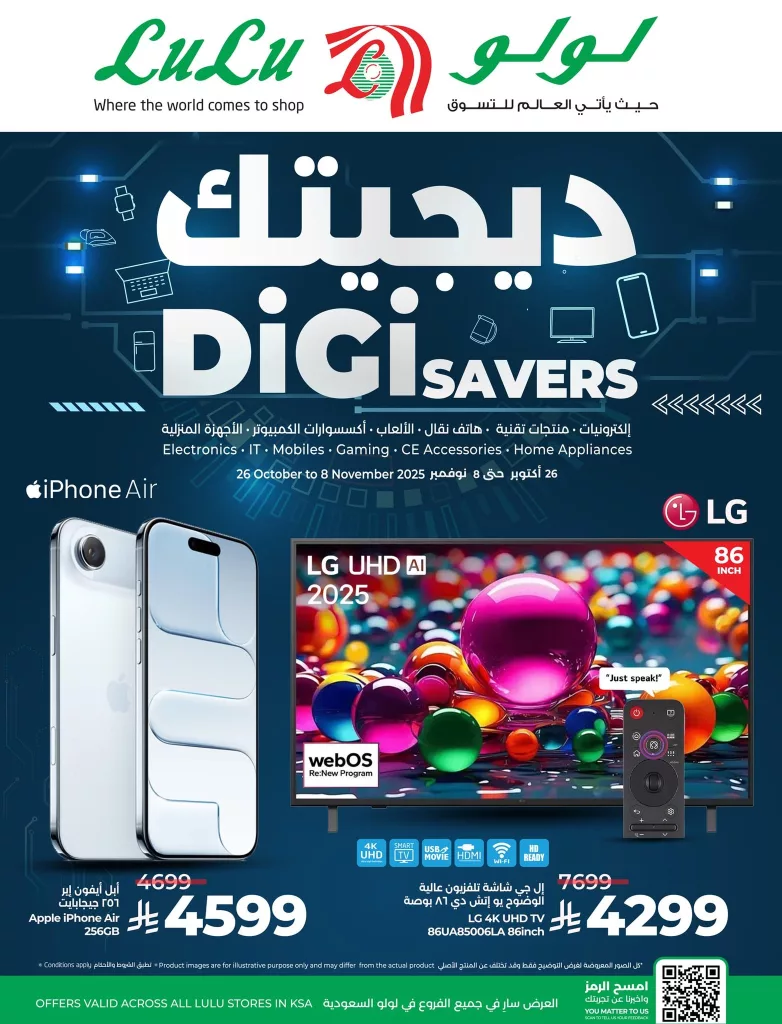 عروض لولو السعودية الأحد 26 أكتوبر 2025 تقدم مجموعة مميزة من الهواتف الذكية من شركات شاومي وفيفو كما توفر عروض الأجهزة المنزلية أجهزة كهربائية متنوعة مثل الثلاجات والغسالات والأفران وأجهزة الطهي و تشكيلة من أجهزة التلفزيون الذكية و بتوفر كمان أجهزة صغيرة مثل الميكروويف والخلاطات المكواة والمكانس الكهربائية