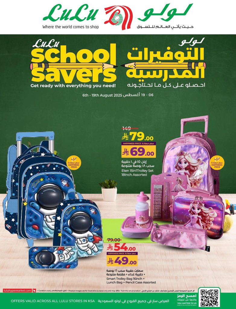 عروض لولو السعودية بمناسبة العودة للمدارس الأربعاء 6 أغسطس 2025 تقدم تشكيلة مذهلة من الإلكترونيات وأجهزة المنزل تشمل تابلت بشاشة كبيرة وكمبيوتر مكتبي أنيق وبروجكتر عالي الأداء بالإضافة إلى غلاية كهربائية ومحمصة خبز رقمية وصانعة ساندويتش متعددة الاستخدامات ومكواة بخار وكاميرا ويب ولوح كتابة ذكي للأطفال